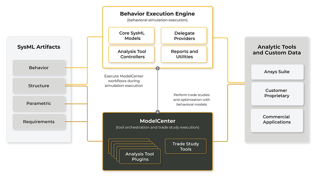For example, system engineers can focus on the SysML model and the engineering workflow while subject-matter experts focus on using specific analysis tools. Further, this means that you do not need to start from scratch when implementing MBSE practices. You can take your existing models, scripts, and analysis tools, wrap them inside ModelCenter workflows, and connect them with your BEE simulations quickly and easily.