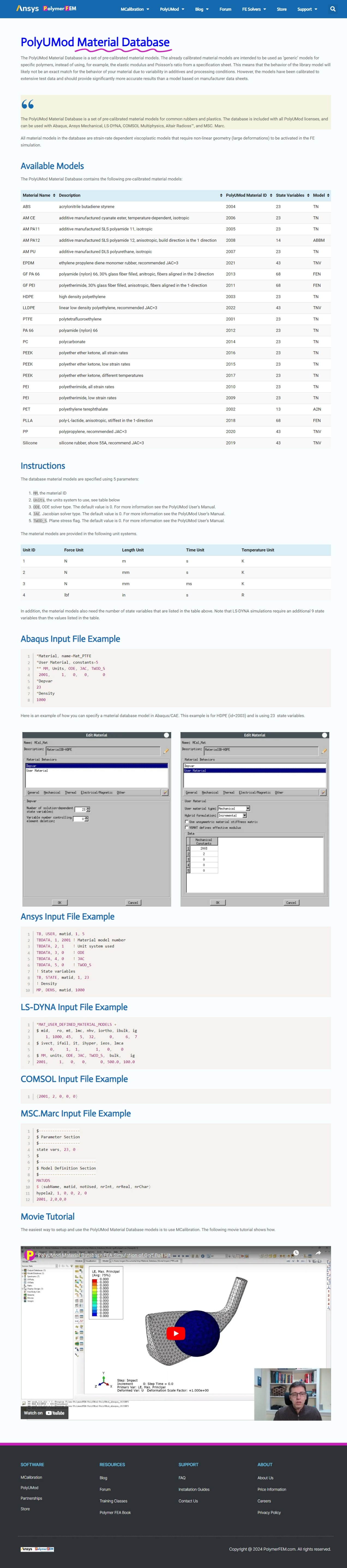 Gain access to information on the PolyUMod Material Database - a set of pre-calibrated material models.