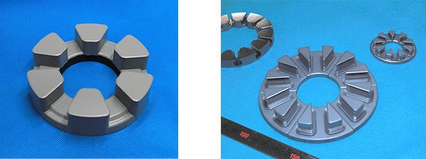 To overcome this material challenge, SEI developed SMCs. SMCs offer superior magnetic properties and a much higher degree of geometric freedom in electric machine design than magnetic steel sheets. Creating the final product involves pressing and shaping an insulated iron particle and curing it at a temperature that is optimized to increase mechanical strength, without destroying the insulation. This compacting process enables SEI to achieve the desired magnetic and isotropic — or highly formable — properties needed for electromagnetic applications. These properties help SEI achieve the geometric freedom to support AGMs, automotive fuel injection valves, boost converter reactors (the elements that boost voltage from the battery), and ignition coils.